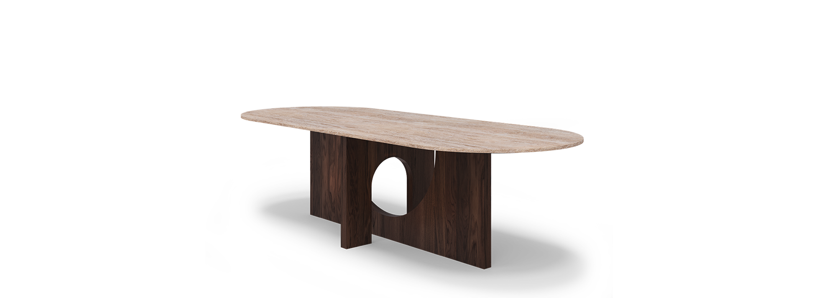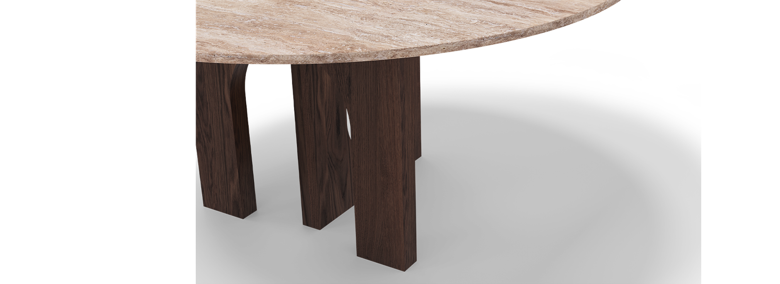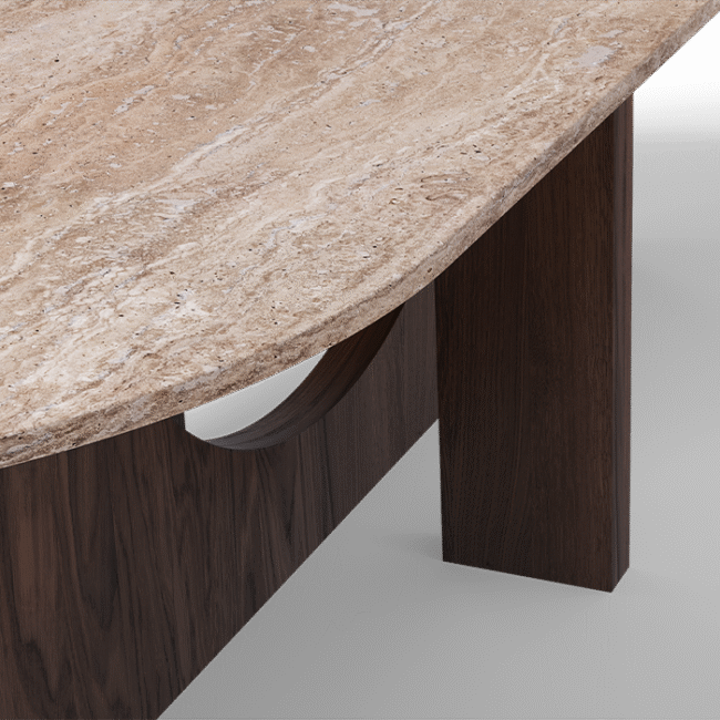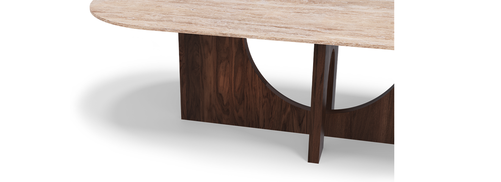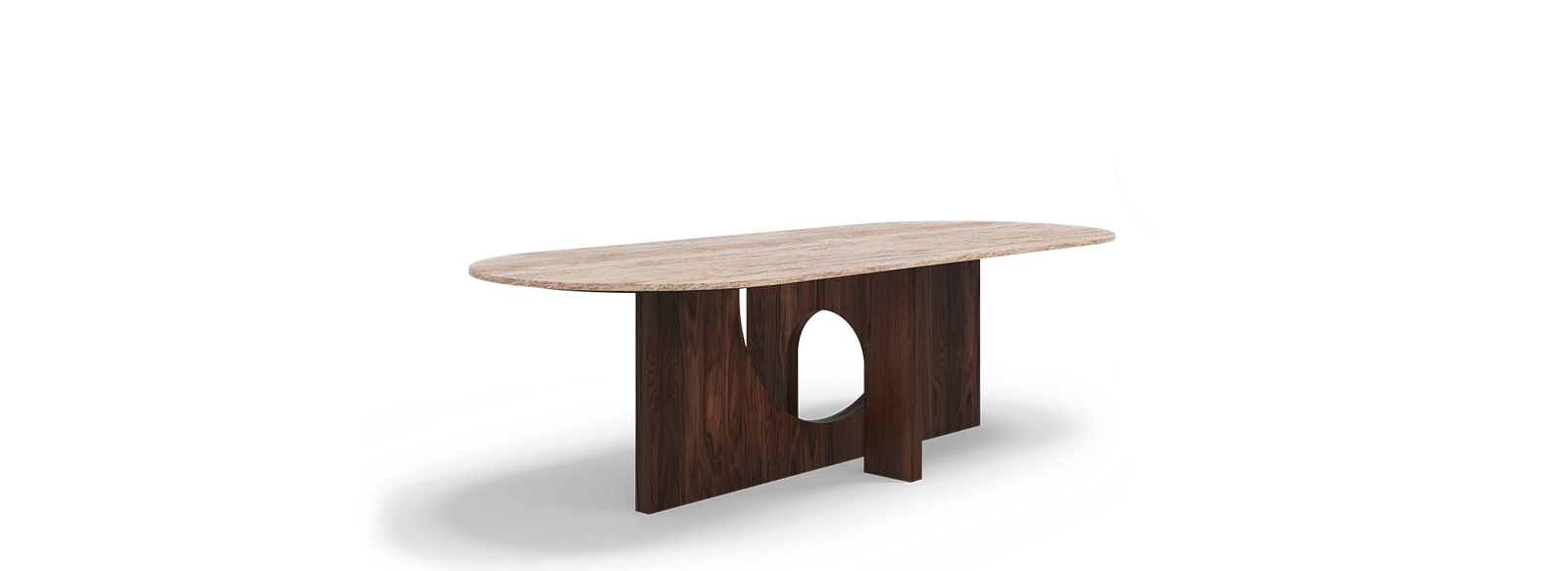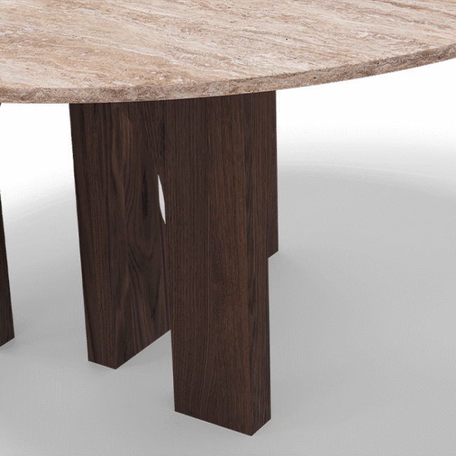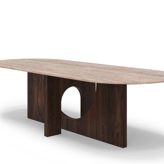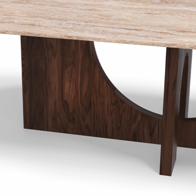 Affogato Dining Table: This modern dining table exudes the inviting allure of an affogato dessert. Its Travertine stone surface, like a canvas, is bathed in warm, creamy tones reminiscent of vanilla ice cream. The table’s wood finish is a rich, deep walnut brown, resembling the robust depth of a well-pulled shot of espresso. Much like the experience of enjoying a steaming affogato on a cozy afternoon, this modern dining table that comfortably seats 10-12 people is an elegant and harmonious option for a modern dining room. Other marbles and wood colors are available upon request.