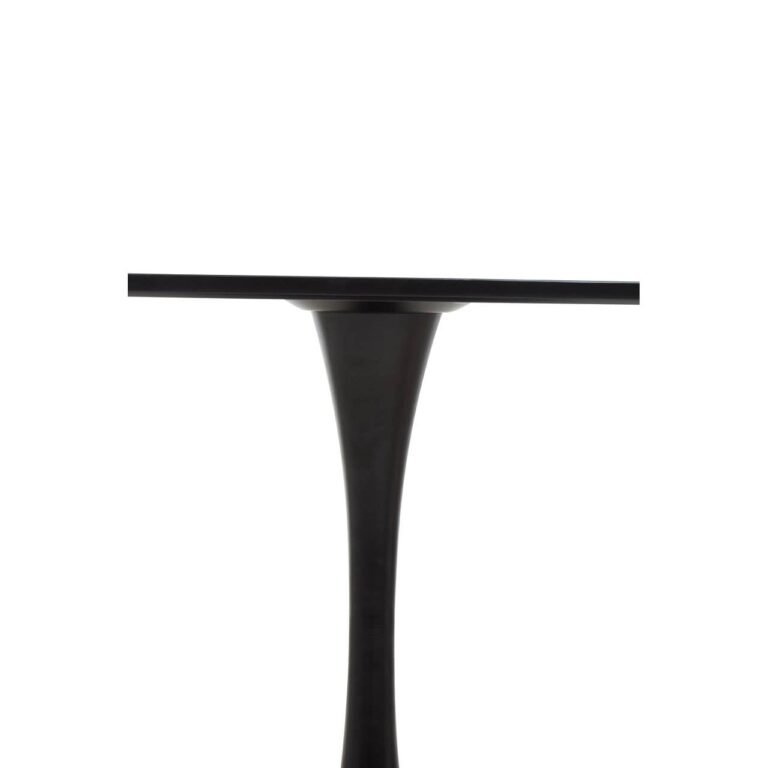 Bathurst Small Black Dining Table: This coffee table features an elegant pair of circles featuring a black MDF top matched with a sturdy metal base. Modern and contemporary, a sleek column seamlessly juxtaposes the rounded contours of the design.