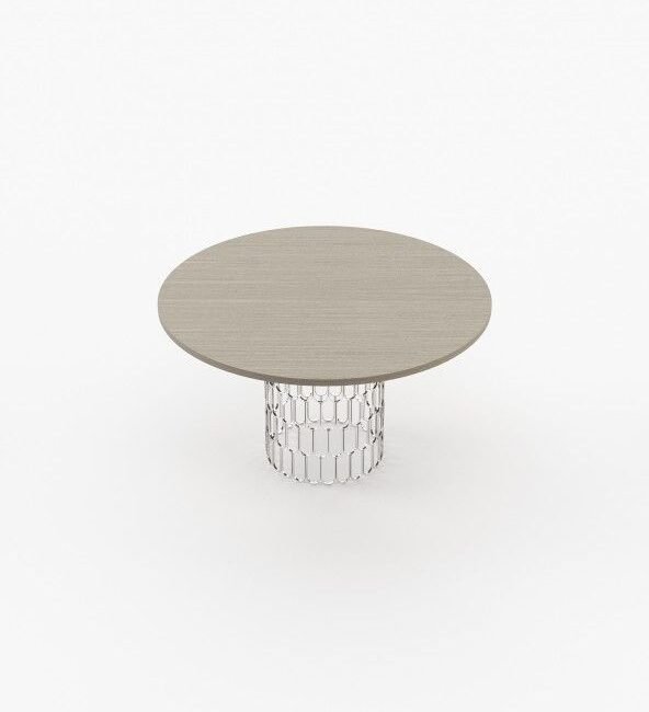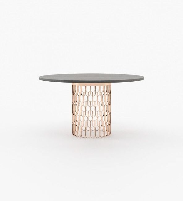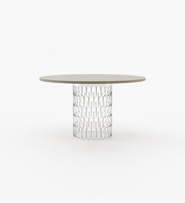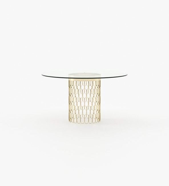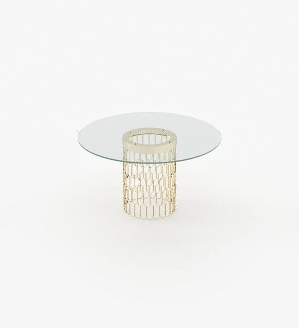 Brenda dining table is a glamorous piece, designed for modern dining rooms. The round glass countertop sits atop a stunning cylindrical structure.