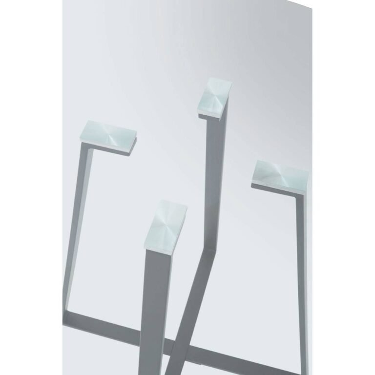 This Etro Glass Dining Table adds a chic statement to the interior with its understated design and geometric shape. The intersecting base of this table is given a matte grey finish, and it is topped with a round translucent glass making it ideal for modern inspired homes.