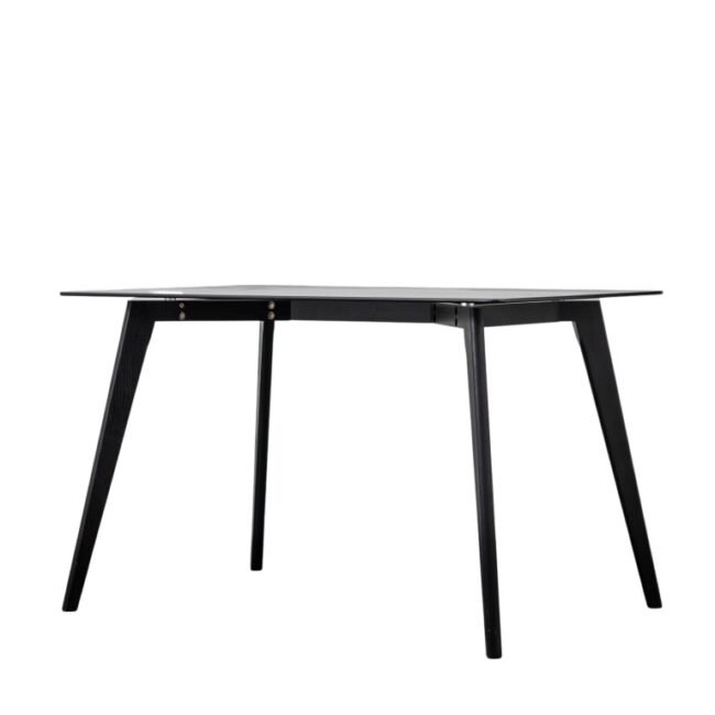 This lovely dining table features a beautifully designed solid oak base with a black finish combined with a smoked tempered glass top to give a stunning contemporary look. It is part of a collection offering a range of tables, in the black oak and smoked glass, and also with natural oak bases paired with clear glass.
