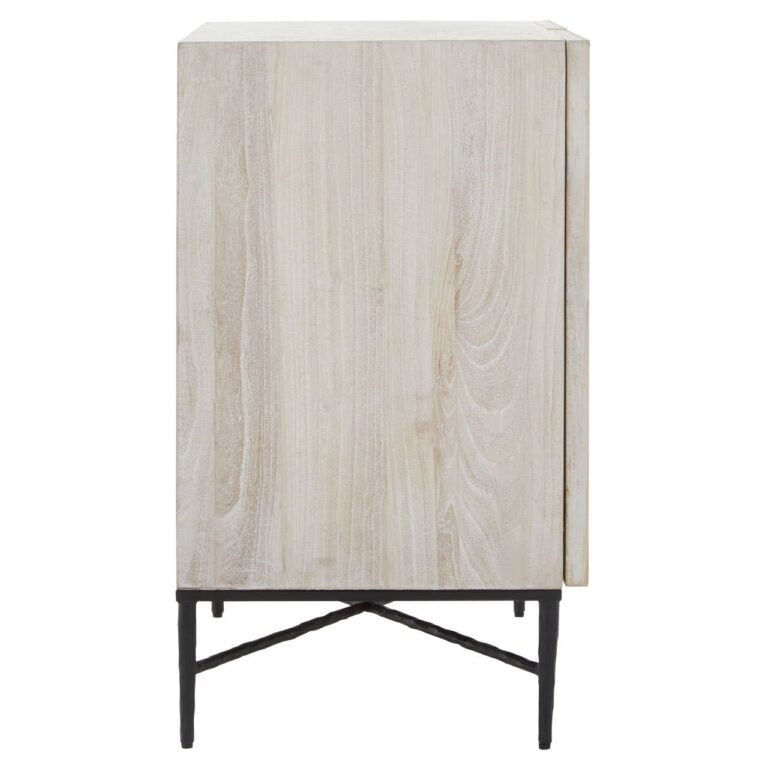 Hastings Sideboard: This two door elm wood sideboard provides generous storage space while its elegant design makes it a statement piece. It is supported by iron legs and coordinates with boho style weathered wood furniture.