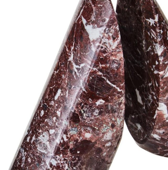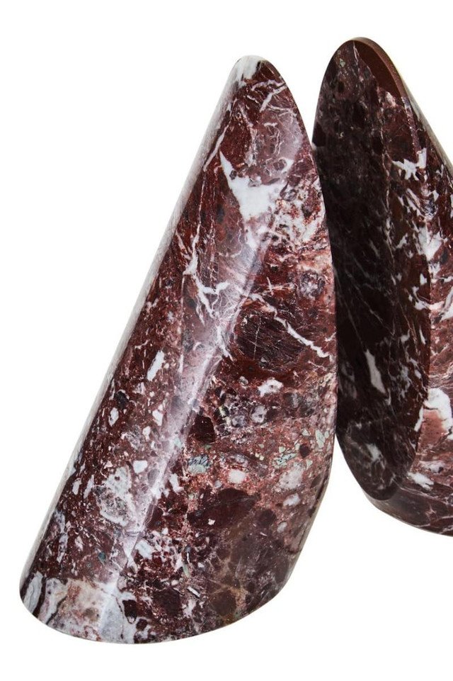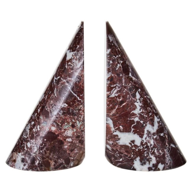 Almos Set Of Two Marble Bookends: The Almos set of two bookends showcases the timeless elegance of red marble, enhanced with natural veining that makes each piece unique. Designed in a sleek conical shape, it blends contemporary style with luxury, making it a striking accent for modern interiors and decor.
