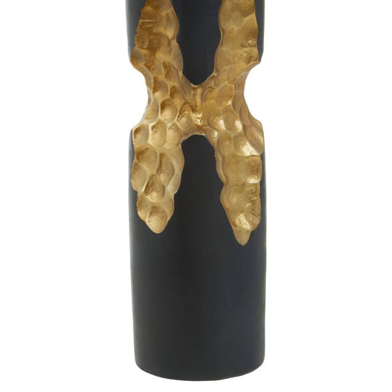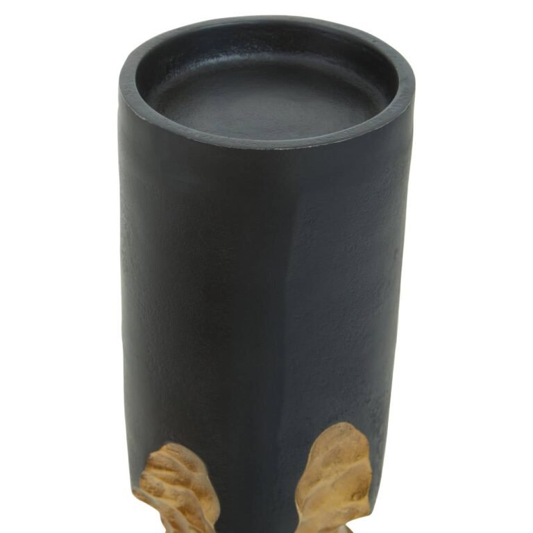 This Aito Large Black Candle Holder has a unique hourglass design, the middle of the candle holder has an intricate gold honeycomb pattern which contrasts the black aluminium creating a contemporary aesthetic.