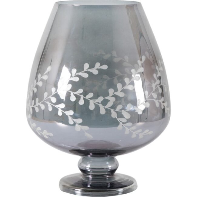This candle holder features a stunning gold leaf design and a lovely smokey grey colour, perfect for letting the light through and accentuating the design. Also available in a smaller size and the pair look perfect when paired together.
