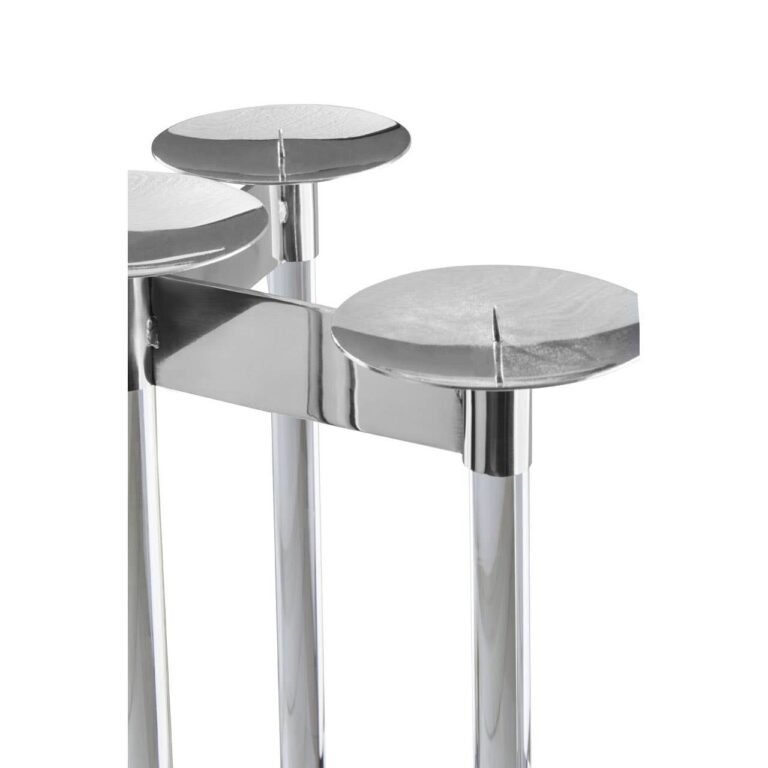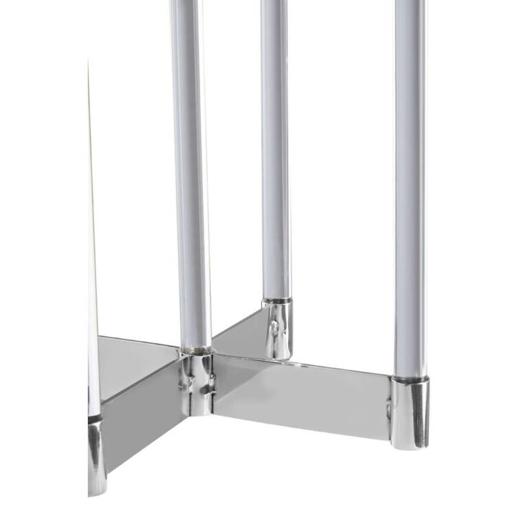 This sleek and reflective candelabra is made from smooth stainless steel and features on-trend acrylic elements. The silver colour produces a reflective finish. It has five round sconces that are perfect for displaying pillar candles.
