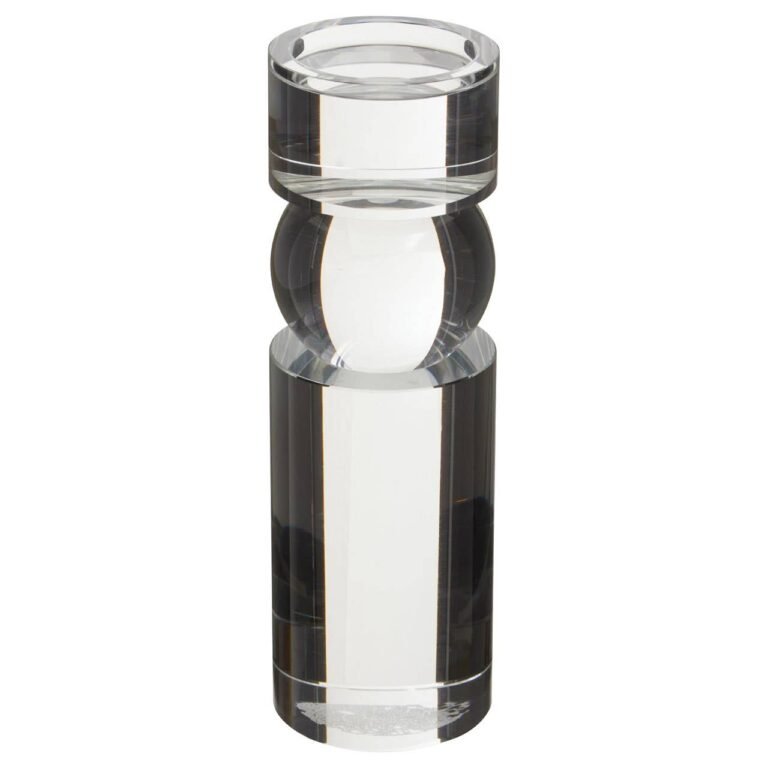 Yarrie Large Crystal Bubble Candle Holder: This large candle holder provides sophistication to the living area with its clear finish and glam appeal. Featuring geometric forms, this candle holder flaunts minimal sculptural qualities that ensures radiance and character to traditional aesthetics.