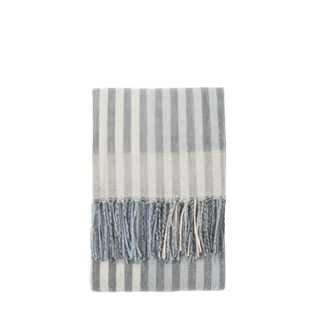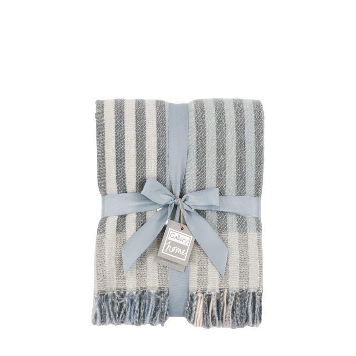 Franc Jacquard Stripe Throw: Cosy and soft, this stripy throw adds a touch of quirky charm. The blue and natural stripes make for an eye catching design, while the soft feel and fringe detail add cosy comfort.