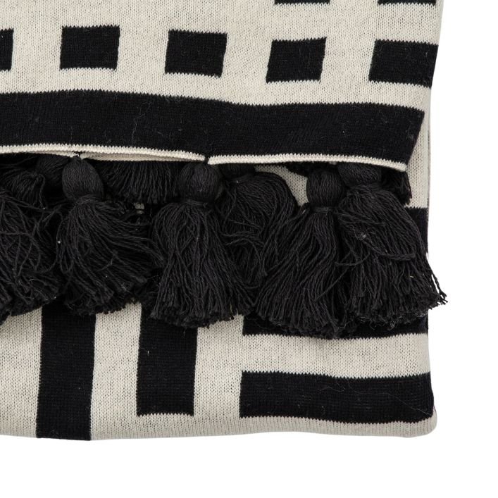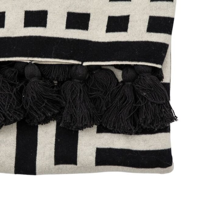 Mert Knitted Tassel Throw: A Stylish Knitted throw with a contemporary black and cream design and finished with charming black tassels.