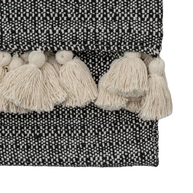 Weave Throw with Tassels Black