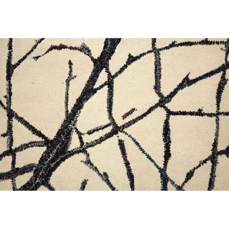 Osie Large Branch Print Rug: The Osie rug is made from a blend of natural wool and polyester, soft underfoot and gentle to the touch. Its ivory finish provides a beautiful canvas for the black branch design which stretches across its rectangular surface. Hard-wearing and durable, its hemmed sides ensure that the rug retains its shape.