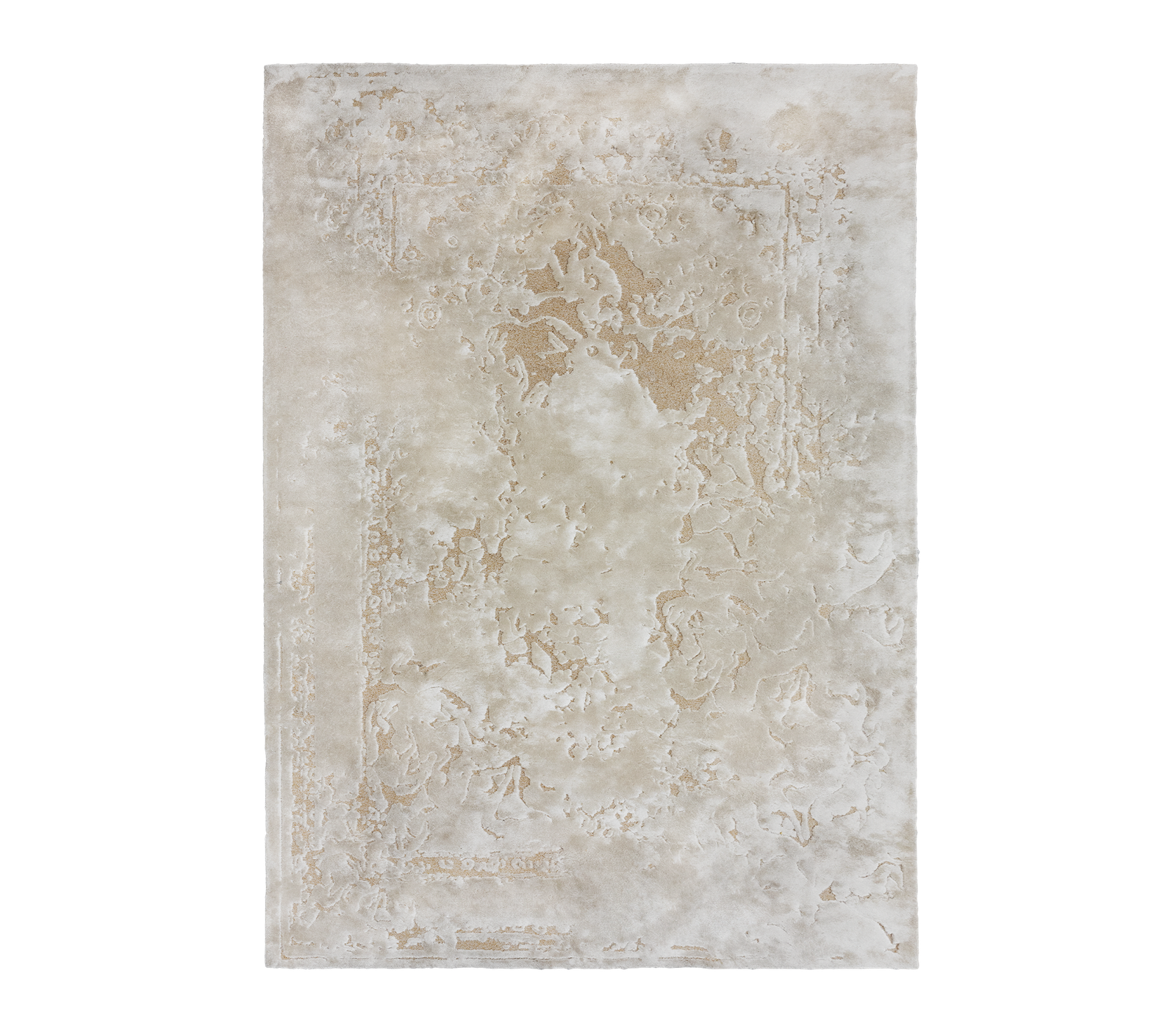 Rectangular Hand-tufted rug with the a classical motif.