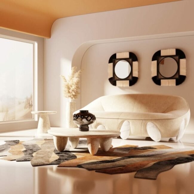 Tapis Shaped 65, 64 & 7 are eclectic rugs that bring back mid-century modern vibes mixed with Memphis style. Our Shaped Collection is perfect for an irreverent interior look, from the floor to the walls. Made with botanical silk, an eco-friendly material that makes a comfortable and luxurious rug, our shapes rugs will be the star piece in any room. We created this collection because rugs can be more than rugs, they can be a piece of art. All Tapis rugs are available for customization.