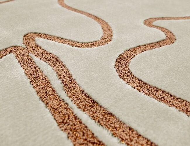 Bathed in the tranquil essence of soft beige and taupe, the Taupe Rug reveals a delicate, face-like silhouette, a testament to the peaceful elegance inherent in its minimalist design. Meticulously hand-tufted using a combination of regenerated nylon, botanical silk, and a splash of copper lurex lines for a metallic look, the Taupe Rug radiates a sophisticated charm and polished grace, that will enhance any room with its subtle sophistication.