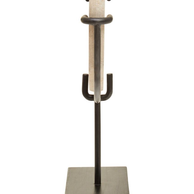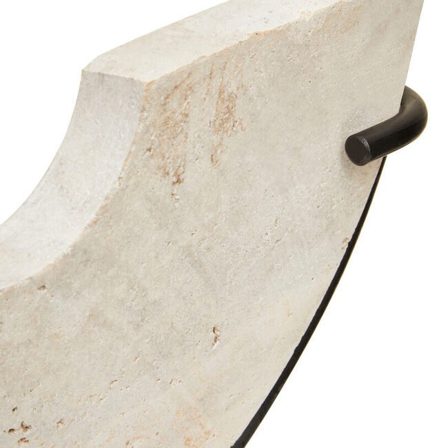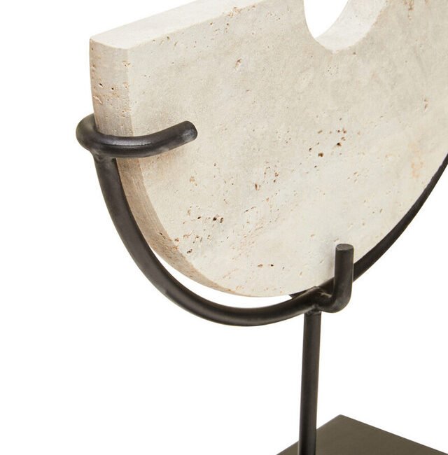 Borit Travertine Small Sculpture: The Borit small travertine sculpture is a decorative piece with natural textural variation, featuring a half-moon shape encased in a sleek metal frame. This modern sculpture adds a touch of natural charm to any interior.* Due to the natural materials used in the creation of these products, slight variations in colour, texture, and size may occur. These natural variations are an inherent characteristic and should be considered part of the unique beauty of each piece.*