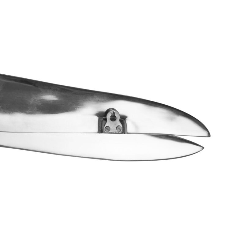 Brit Wall Mounted Scissors: Ideal for the home or hairdressing salons, this oversized scissors in polished silver aluminium will make a statement when hung on a wall. This piece will look eye-catching with its slightly open blade cuts and metallic charm.