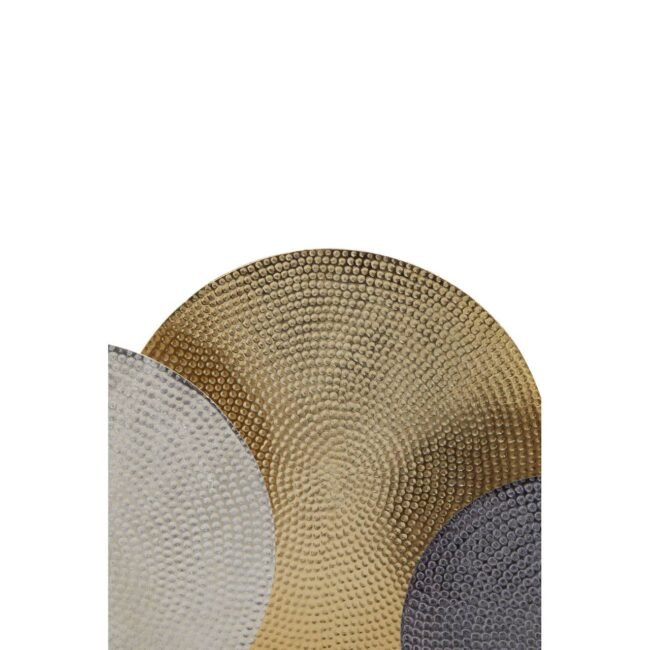Product NameEli Set Of Three Gold Silver And Black Hammered Metal Sculptures