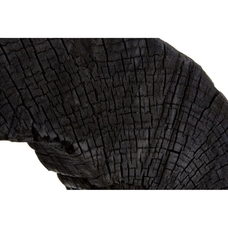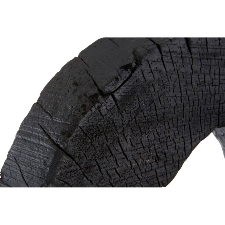 Each unit is individually crafted by hand, giving it its own unique variations. Url Small Rustic Mango Wood Sculpture formed from eco-friendly mango wood, with a jet black colour that gives it a charred look. The wood’s surface is scored with lines that give it texture, while the hollow centre’s uneven lines complement the sculpture’s irregular outer. The sculpture is held aloft by a slim iron stand, with a rectangular block that keeps it stable.