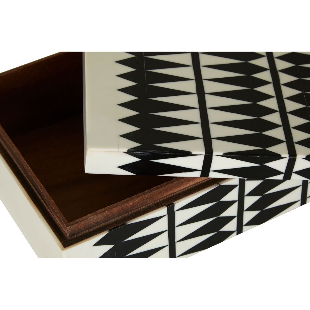Embracing monochromatic style, the Borough Black / White Trinket Boxes are counterpointed by a black geometric pattern comprised of diamond shapes.
