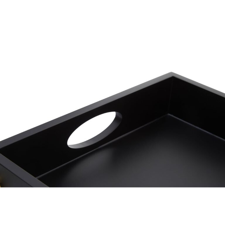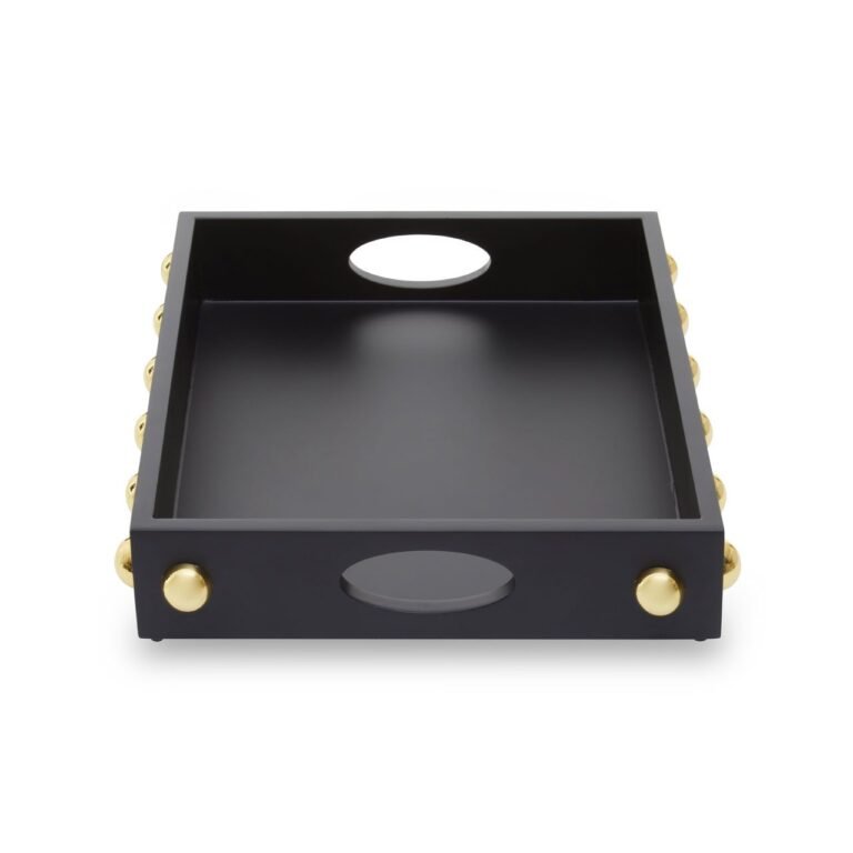 This Kahlo Black Tray draws influence from the Art Deco era and exudes a glam appeal. Skilfully made from MDF with a stainless steel stud detail in the warm metallic finish, this tray boasts a modern and organic style to a contemporary home.