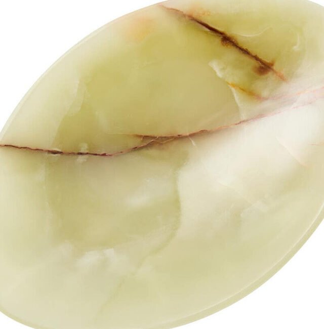 Layna Onyx Oval Dish: This decorative dish is handcrafted from natural onyx and shaped into a shallow oval form. Its smooth surface and earthy tones with natural veining make it a refined accent for coffee tables, consoles, or display settings, blending function with style. *This product is handcrafted, colours may vary due to the nature of the product.*