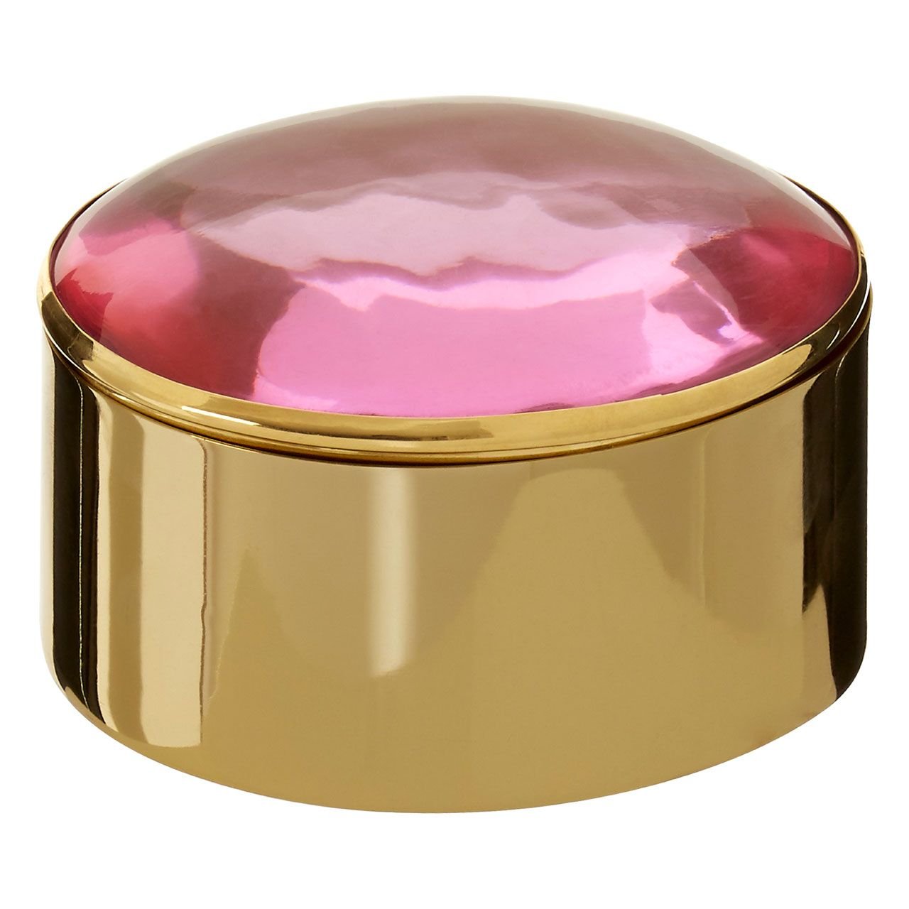 Meryl Set Of 3 Trinket Boxes With Pink Lids: The Meryl trinket boxes add a warm metallic accent to contemporary interiors. Their cases are made from smooth metal, each one featuring a rich and reflective gold finish. Polished pink stone is set into each lid to create a tonal contrast with the gold. Use them to store small items of jewellery or simply to elevate a space with some luxe style.