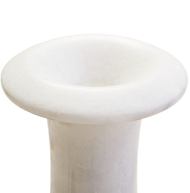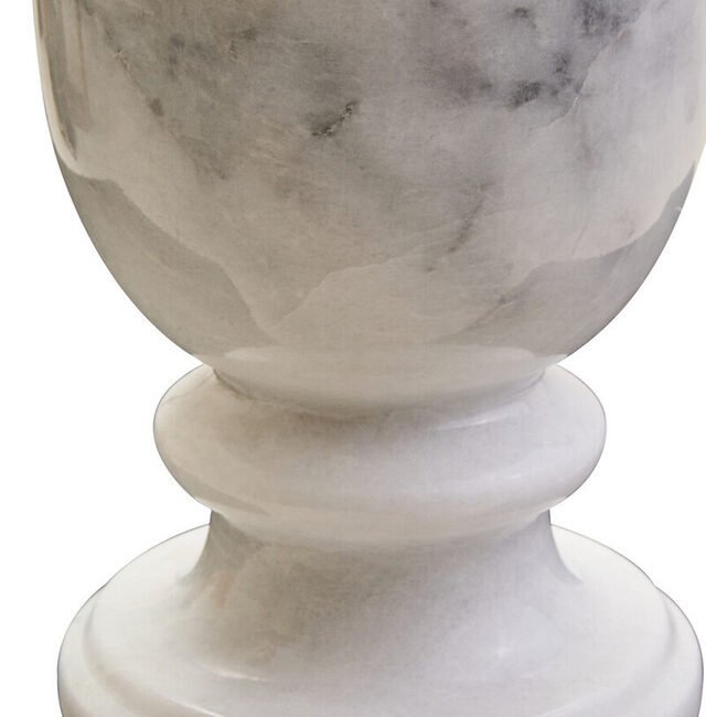 Bucci White Marble Vase: Handcrafted from white marble, this stylish vase features an urn shape with a smooth finish and natural veining, offering a classic touch to side tables, shelves, or mantelpieces. Its solid base ensures stable placement, making this natural marble vase perfect for floral arrangements. *This product is handcrafted, colours may vary due to the nature of the product.*