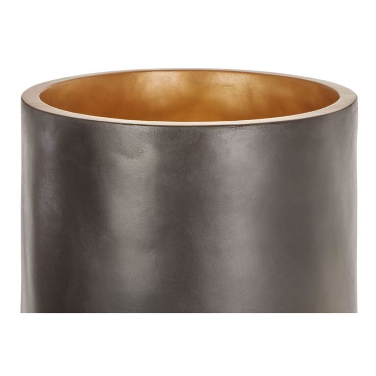 Neil Large Black Finish Planter: The Neil planter stands on a trio of renewable beechwood legs, with a gold finish that complements its inner. Perfect for a potted plant, use it to add a pop of greenery to interiors or the garden.