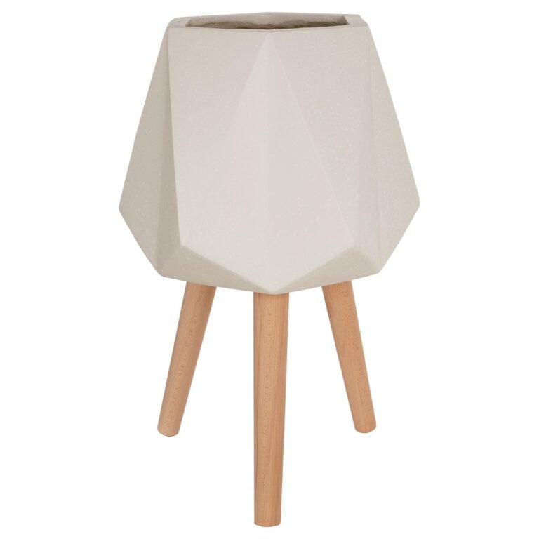 Neil White Multifaceted Planter – 62Cm pot has a contemporary geometric design and a crisp white finish with a speckled pattern that styles easily with a number of colour palettes. Each of its three legs is made from lightly grained beechwood.