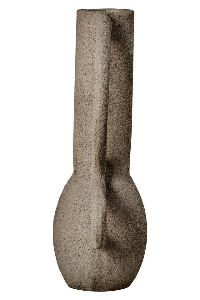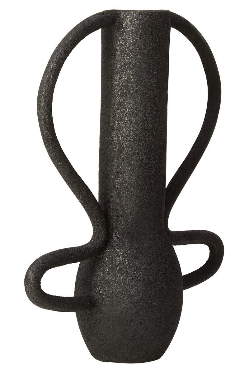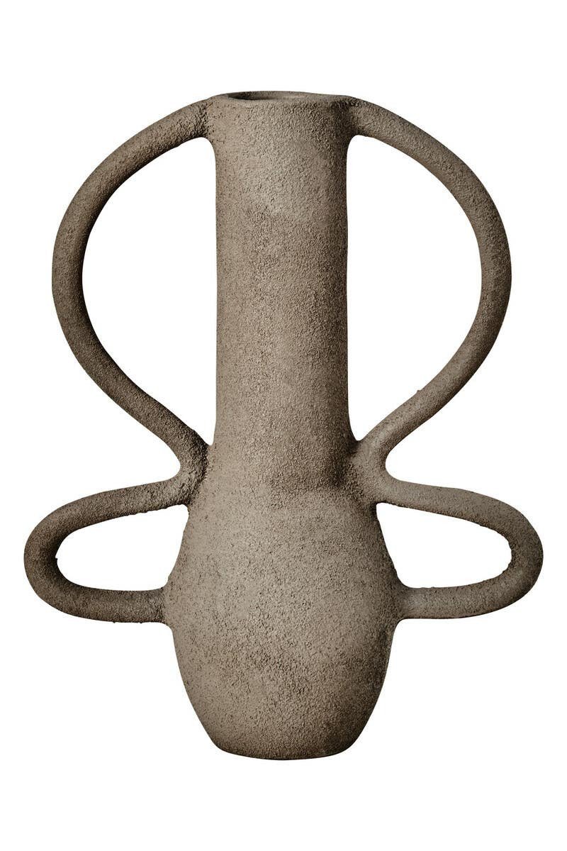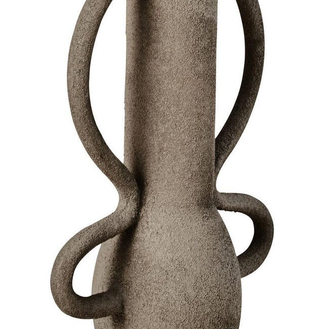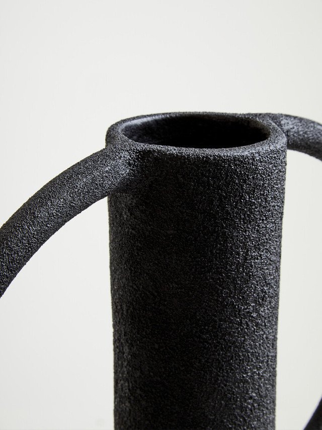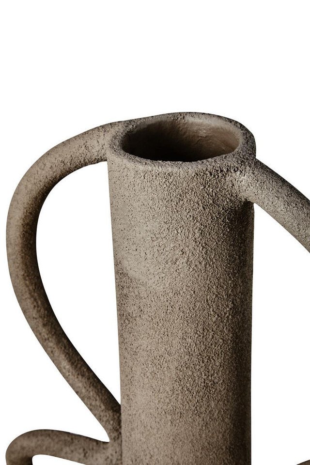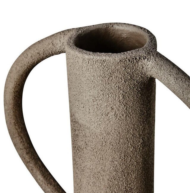 Riva Textured Vase: This vase featuring a slim neck and stylish looped handles with a textured grey finish is perfect for adding a sculptural accent to any home decor.