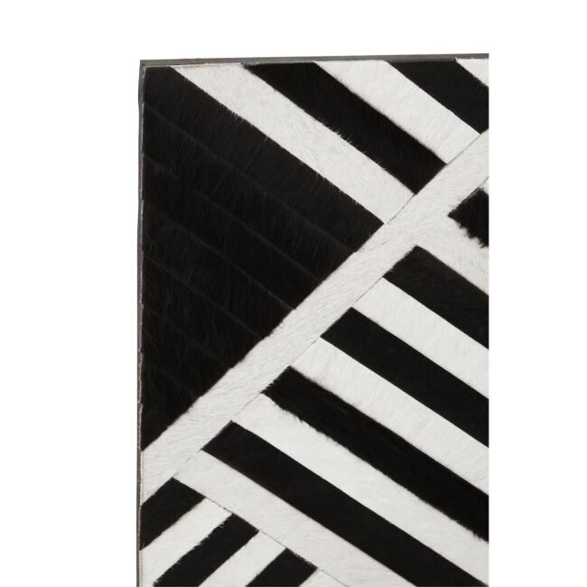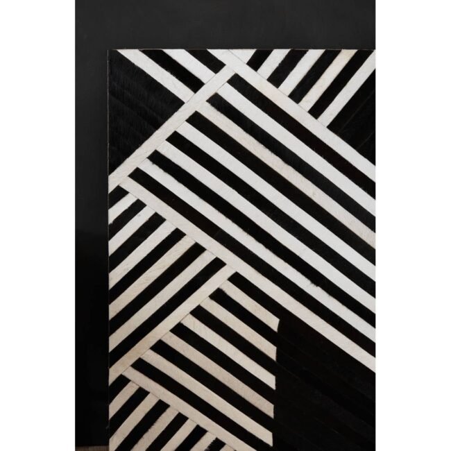 Affril Black And White Abstract Wall Art: Adding visual interest to a space has never been eaiser than with the Affril black and white abstract piece. The black and white abstract print in on hair on hide leather, providing a visual and tactile experience.