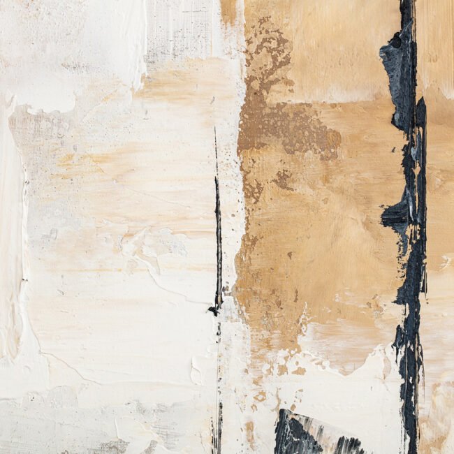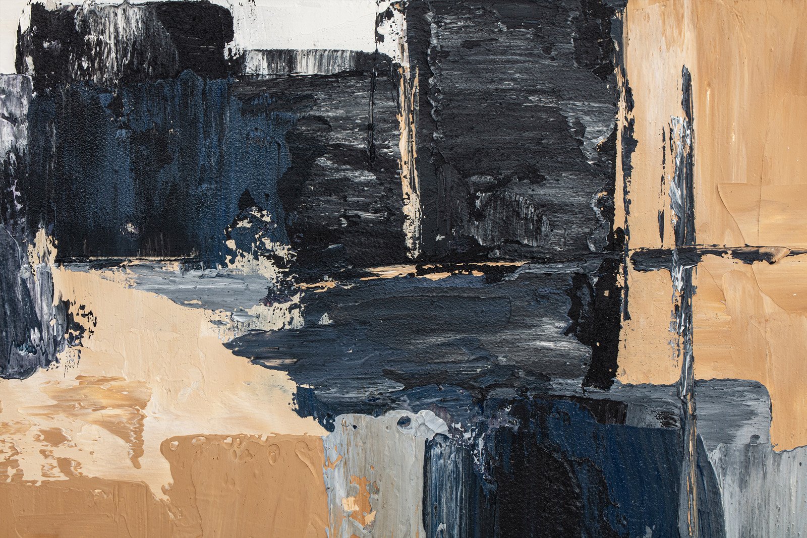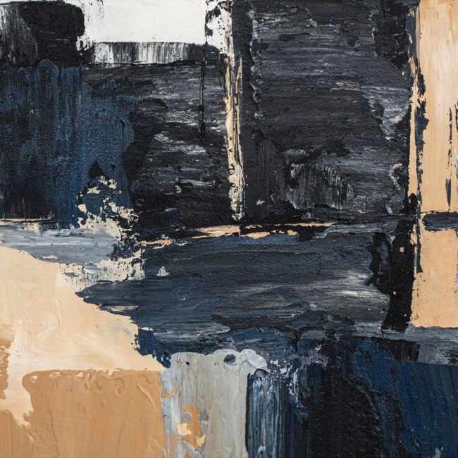 Oil on canvas 75 with brown frame. This modern abstract painting is hand finished, with no two the same, complete with beautiful palette knife textures. Please note that the dimensions are for the oil on canvas only and exclude the frame which typically adds an additional 1.5 cm on top.