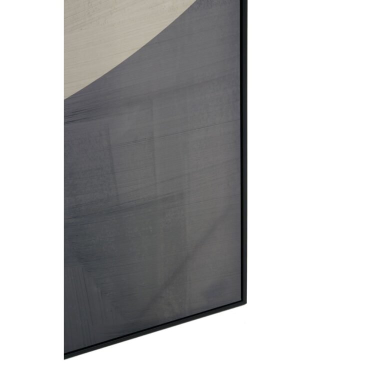 The Strata Abstract Wall Art showcases an Abtract artwork of grey and black color. The thick brushstrokes of paint give it a textured look, and the canvas is held securely in a sleek black rectangular frame.