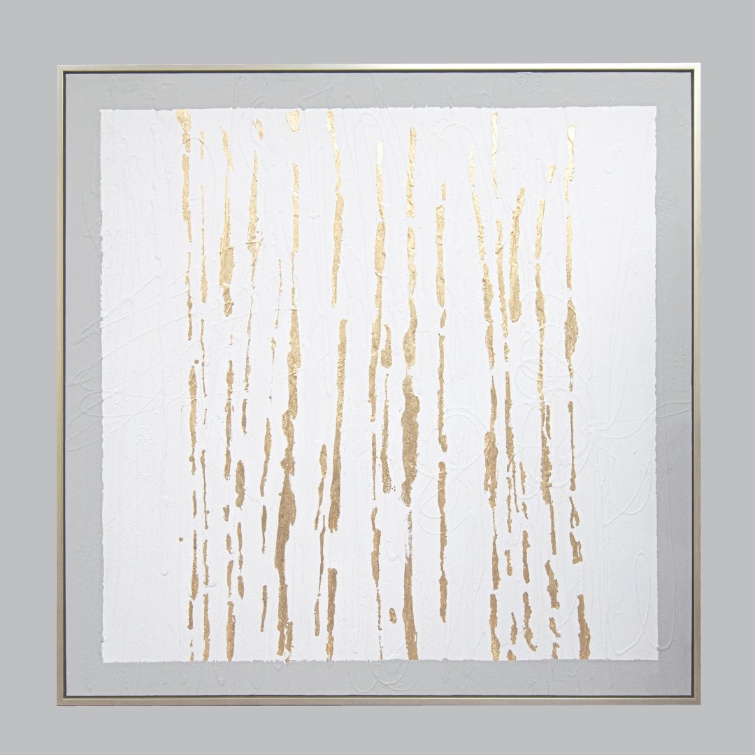 The Talan Canvas embodies minimalist design with maximum impact. Its clean, uncluttered aesthetic is punctuated by striking gold stripes that add a touch of modern elegance and visual interest. This piece offers a sophisticated and understated statement to any wall.