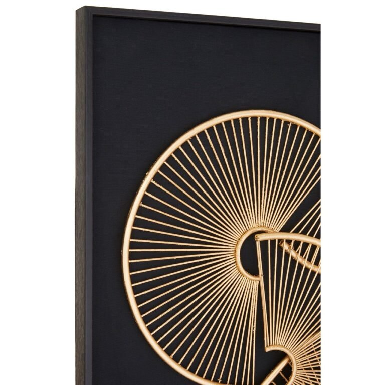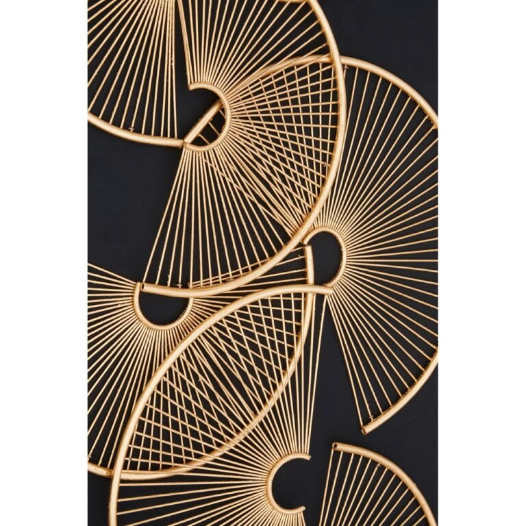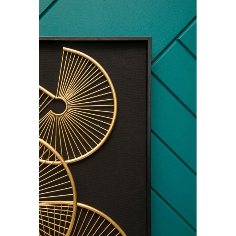 Thorpe Metal Fan Framed Wall Art: The rectangular frame is made from pine wood and is coloured black to counterpoint the gold finish iron. Display this luxe accent piece landscape or portrait.