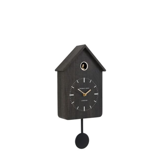 Bird Clock: Add a touch of modern elegance to your space with this contemporary dark grey Cuckoo clock in a sophisticated wood finish. Designed with clean lines and refined detailing, it effortlessly blends timeless tradition with modern design. Each hour, a charming cuckoo emerges to play a delightful dawn chorus tune, filling your home with warmth and cheer. Thoughtfully crafted for convenience, the clock features an automatic night mode, ensuring peaceful silence through the night.