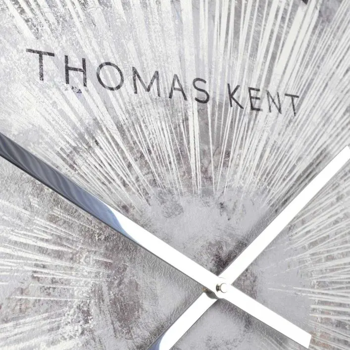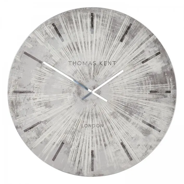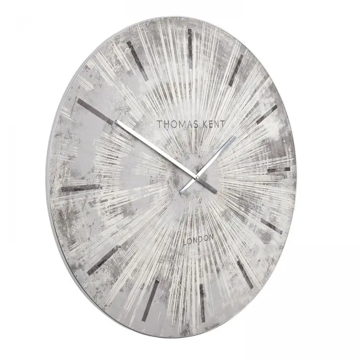 Burst Grand Clock: With its high gloss silver rim and abstract radial textured face, this giant of a timepiece adds subtly stylish radiance to any room.