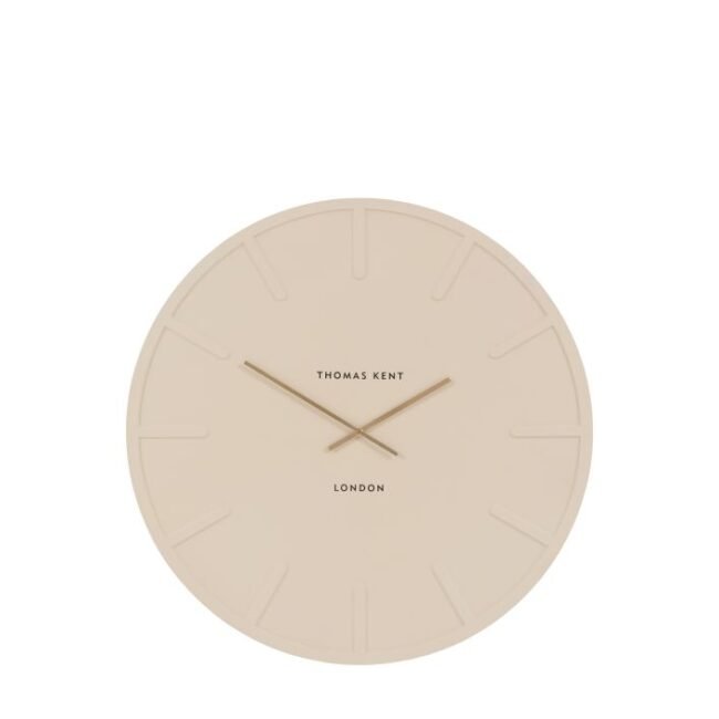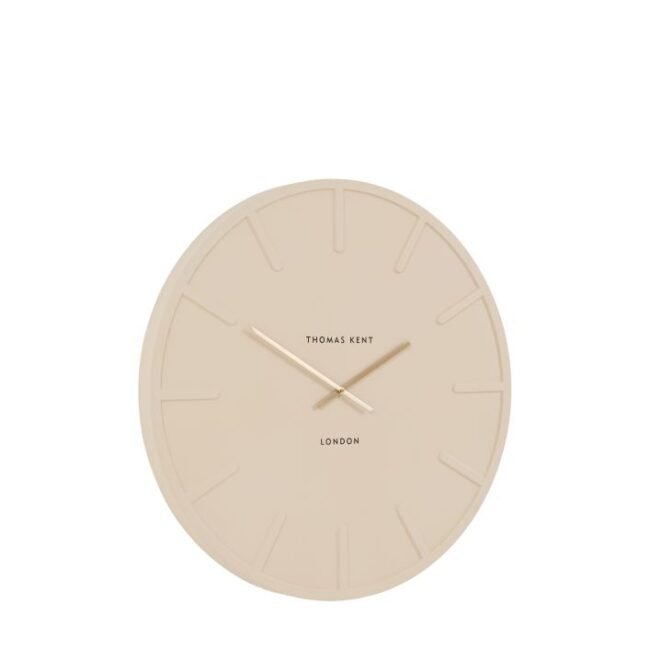 Larrs Wall Clock: Beautifully combining modern minimalism with timeless elegance, this clock is finished in a matte cream and features raised hour markers and refined gold hands, creating a sophisticated contrast. This contemporary statement piece is ideal for adding understated luxury and style to any modern living space.