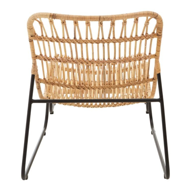 Ashburton Chair And Footstool: This lounge chair comes with a footstool and is intricately hand-woven from eco-friendly natural rattan. The small bands of rattan are tightly wrapped around the black finish iron frame that ensures stability and style.