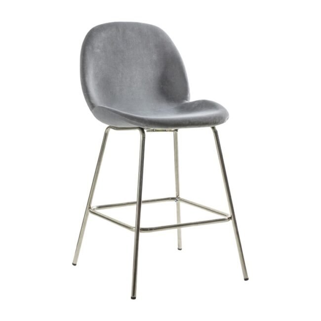 Theis stool offers simple, contemporary design, with its sleek seat and metal base. The subtle light grey velvet pairs perfectly with the silver finish of the base to give a chic sophisticated look. Available in two other colours, and there are also dining chairs in five colours.