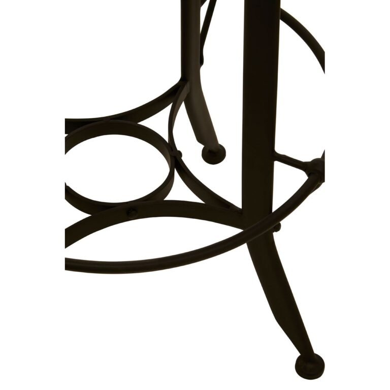 A round slab of green marble is set into the seat of this Grayson Black / Green Finish Bar Stool, lending tactility and subtle pattern to this accent piece. Its frame is made from tough black iron, each leg curving slightly to soften the look. The footrest extends around the base of the legs. Coordinate it with the Vasco iron and marble table.
