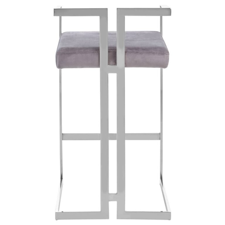 This stool brings a chic accent to the interior with its foam-padded seat upholstered in opulent grey velvet. The stainless steel fixture features an angular framework that creates an art deco allure to a variety of home bars.