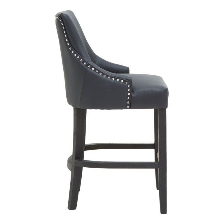 Iftty Fifty Five South Rubberwood Bar Chair: This bar chair exhibits clean-lined aesthetics to kitchen islands. Standing on sturdy rubberwood legs, this chair features a foam upholstered PU seat in black finish with a contoured back and sloping armrests to provide optimum comfort.