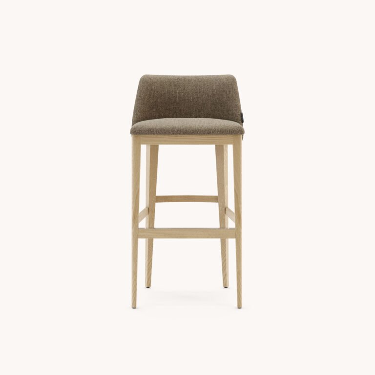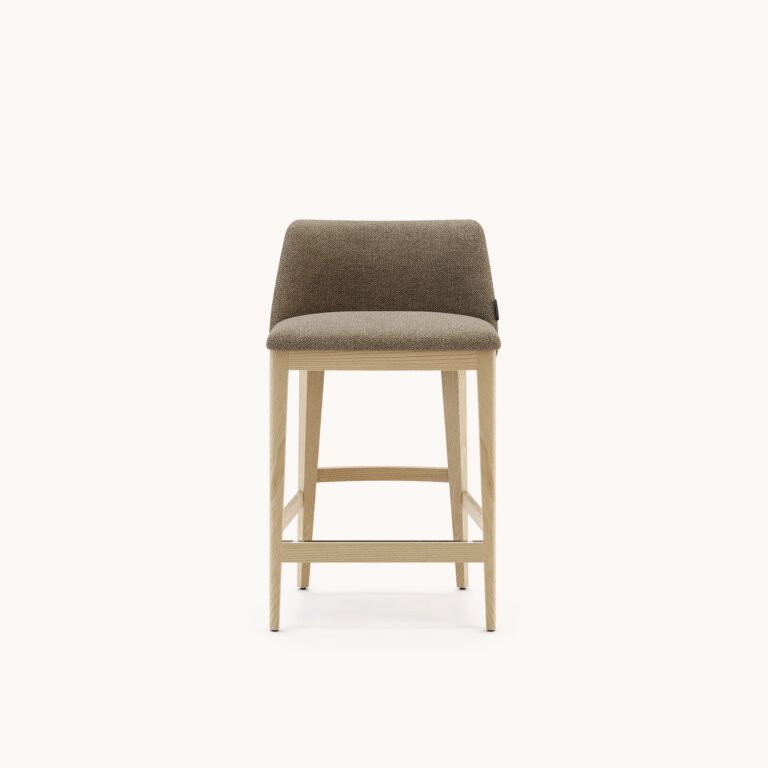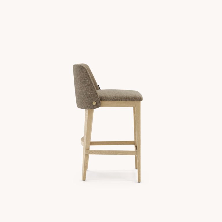 The chair’s key feature lies in its adjustable height, allowing you to choose between the counter chair version (perfect for kitchen counters or breakfast nooks) and the bar chair version (ideal for taller pub-style tables or home bars). Both variations boast a generous seat and backrest, upholstered in a luxurious Helmand 10 fabric for optimal comfort and support. The natural ash wood legs provide a touch of warmth and complement the brushed gold stainless steel details, adding a contemporary feel to the overall design. The Louise Chair also features a polished stainless steel footrest, adding a touch of luxury and enhancing user comfort.