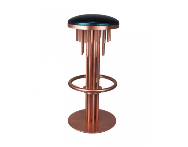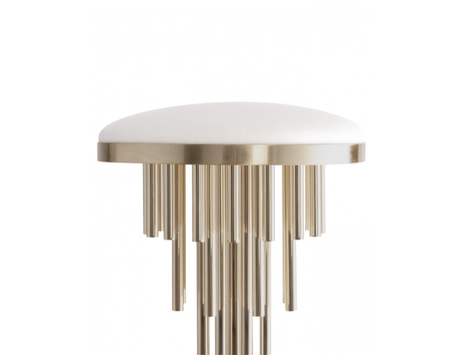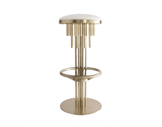 Featuring an impressive and spectacular construction of dozens of individual gold plated brass tubes, the Projection bar stool is a design statement, impossible to pass unnoticed and the perfect fit for high end ambiances. This design is suitable for both residential and commercial projects. Pair it up with multiple bar stools decorating a modern home bar space or an extravagant dinner. Its elegance and versatility will add a touch of luxury to the spaces as its design was thought to combine valuable techniques and noble materials while ensuring comfort.