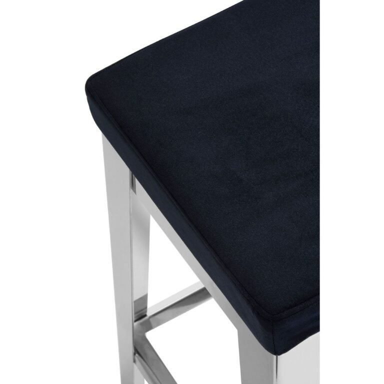 Waver Silver Bar Stool: Simple yet effective in its luxe style look. The black velvet cushion is supported by the straight-lined and simplistic design of the silver-finished stainless steel legs. The silver finish and the actual design add a soupcon of an industrial edge to this piece. Comfortable to sit on and stylish to look at it. This Waver bar stool exudes design.