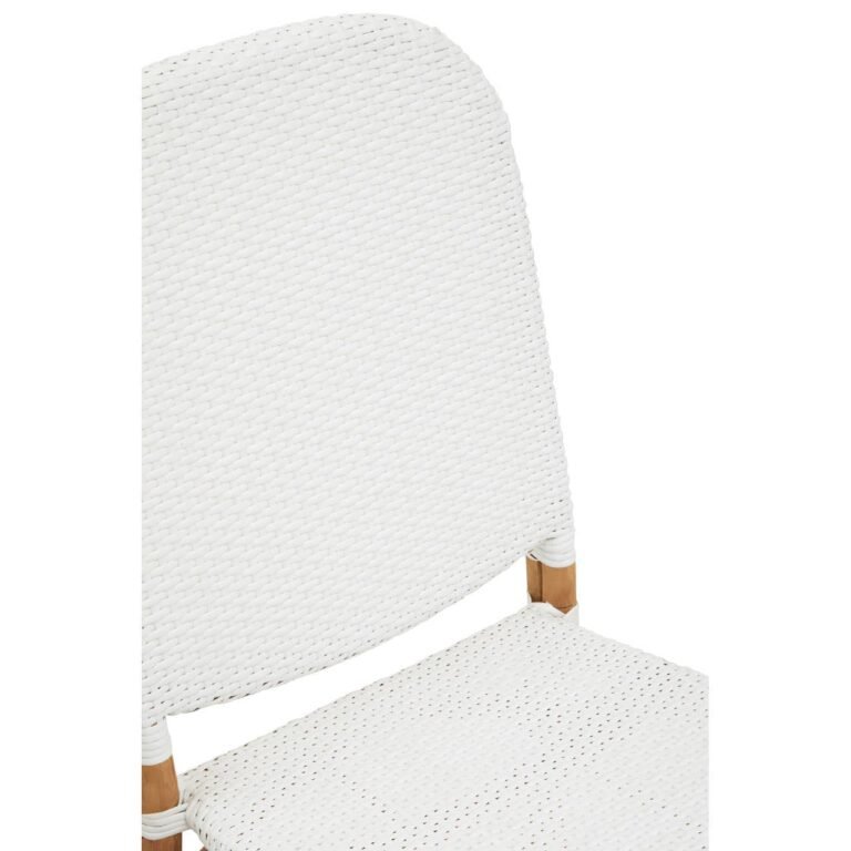 Intricately hand woven from natural rattan, this chair has a plain seat and curved backrest in chic white share contrasting the understated legs in natural accent. The straight legs, connected with an arc between them.