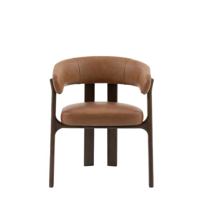 Daon Dining Chair: Boldly modern with an Italian design edge, this dining chair is perfect for updating any dining space, effortlessly adding sophisticated style wherever it’s used. Crafted with oak solids and veneers in a rich charcoal brown polish, the unique design is highlighted by soft brown leather upholstery.