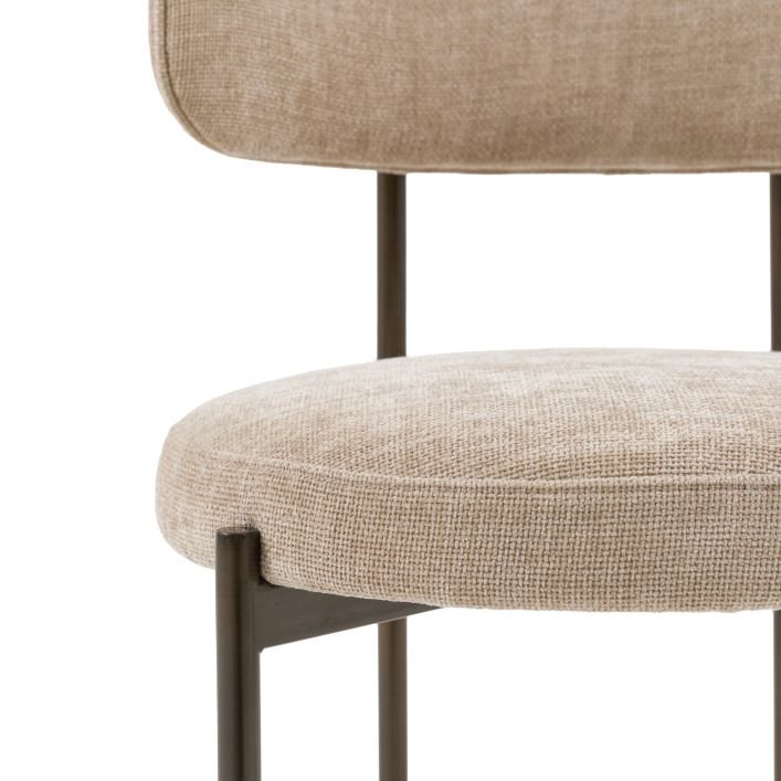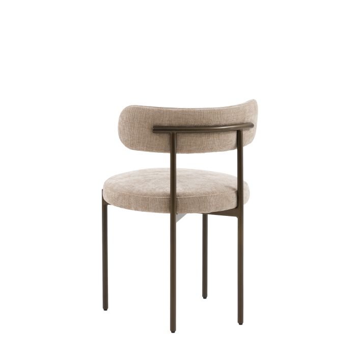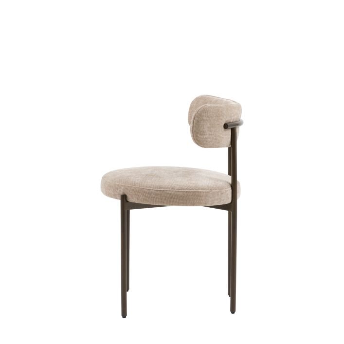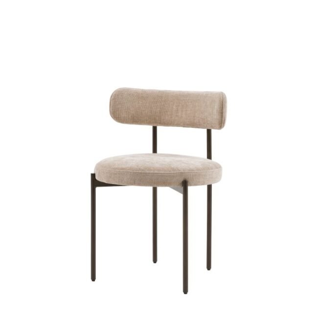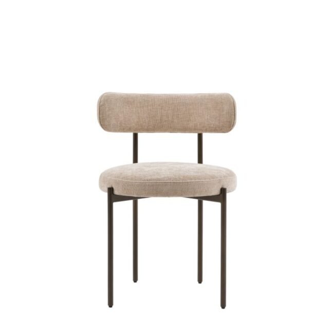 Add a stylish design touch to a room with this pack of two stunning dining chairs. The seats and back rails are upholstered in a lovely cream fabric, with the curved back echoing the shape of the round seat, and the black metal legs and frame perfectly complementing these. Also available in other colours.