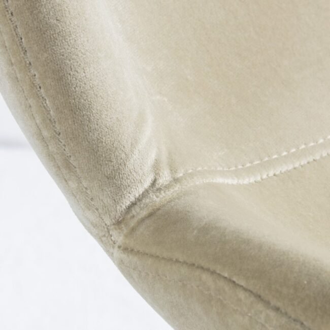 This dining chair offers simple, contemporary design, with its sleek seat and metal base. The soft oatmeal velvet pairs perfectly with the gold finish of the base to give a warm sophisticated look. Available in four other colours, and there are also bar stools in three colours.